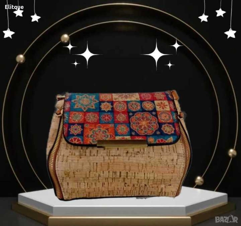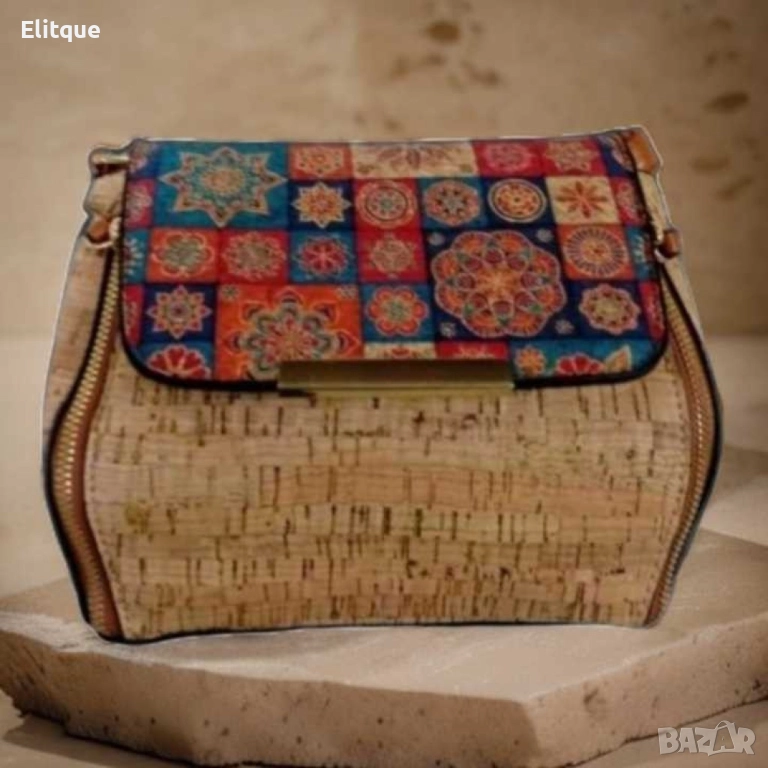 Интересната и стилна дамска чанта от корк е идеалният избор за всяка жена, която търси съчетание от устойчивост, уникалност и елегантност. Със своето просторно отделение, капак с магнитно закопчаване и красивите шарени фигури, тази чанта предлага както практичност, така и стил. Изчистеният дизайн и естествените материали правят тази чанта подходяща за всякакви поводи – от ежедневни излизания до специални събития. Независимо дали се носи с ежедневни облекла или с по-елегантни ансамбли, тази чанта ще добави нотка на естествена красота и индивидуалност към всяка визия.