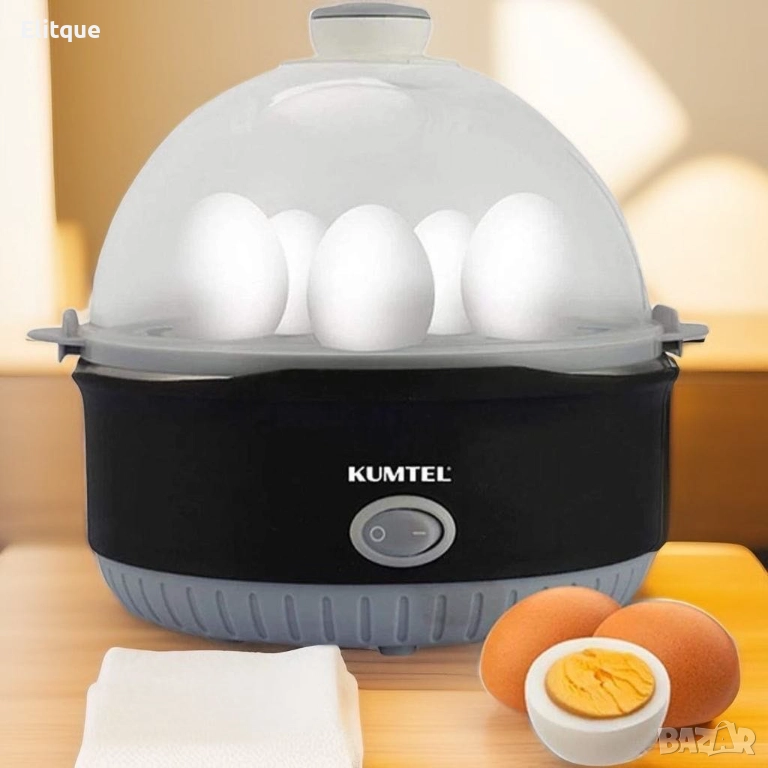 яйцеварката KUMTEL можете да се насладите на перфектно сварени яйца всяка сутрин. С капацитета за 7 яйца, интуитивния дизайн и включените аксесоари, този уред е идеален за всяко домакинство. Лесна за използване и почистване, яйцеварката KUMTEL ще стане незаменим помощник във вашата кухня.