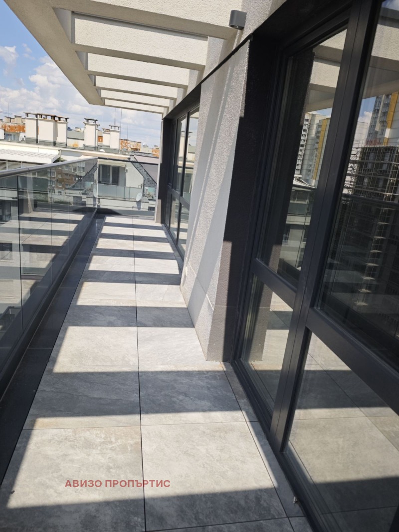 -голяма югозападна всекидневна (31 кв.м.) с кухненска част, трапезна зона и мека мебел, френски прозорци, тераса около целия имот 55 кв.м.);