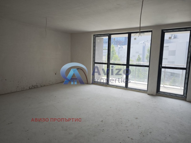 -голяма южна всекидневна (34 кв.м.) с кухненска част, трапезна зона и мека мебел, френски прозорци, балкон (7 кв.м.);