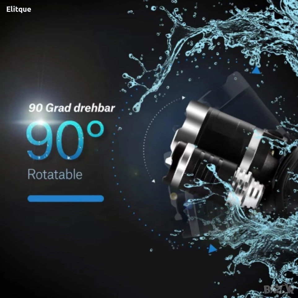 Мощност: 5000 лумена; Осветителна площ: До 400 метра; Режими на осветяване: 1LED, 2LED, 3LED строб; Работно време: 4-6 часа; Захранване: Презареждаща се батерия (включена); Размери: Компактен и лесен за носене; Цвят: Черен; Материал: Висококачествен ABS пластмаса и алуминий.