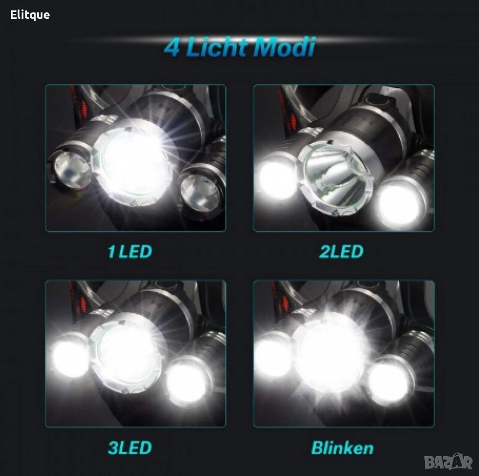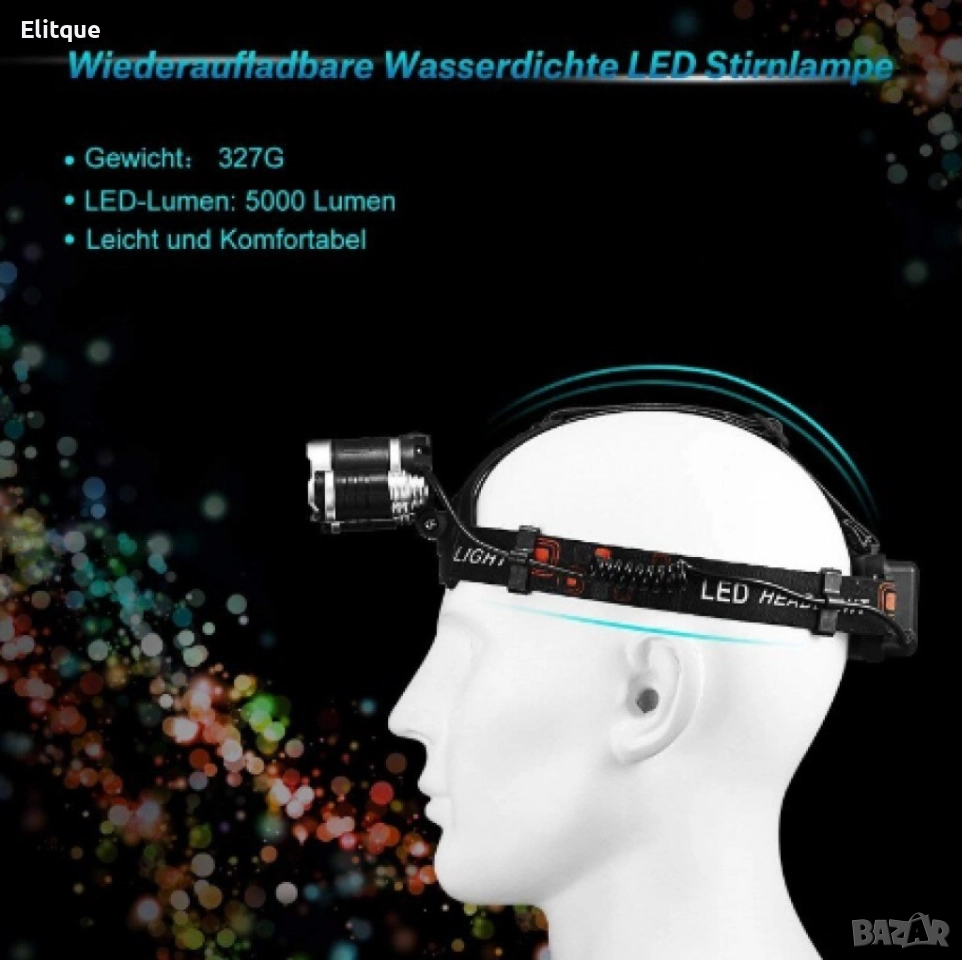 USB LED челник 5000 Lm, Осветителна площ 400 м, Регулируем