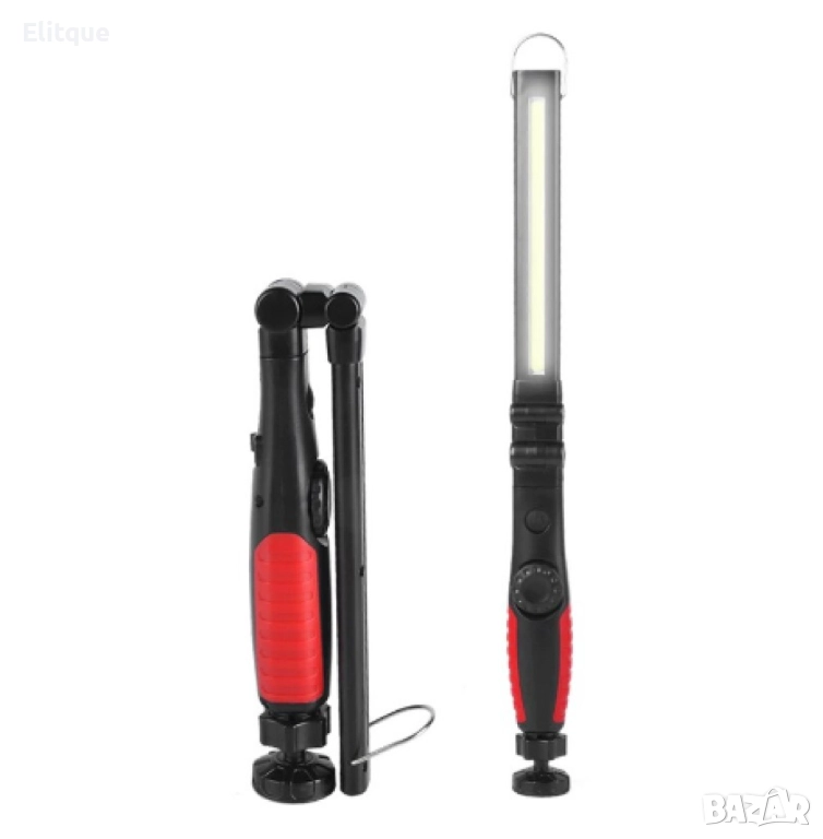 Материал: ABS пластмаса; Цвят на корпуса: Черен и различни цветове; LED модел: СОВ лента; Мощност: 5 W; Светлинен поток: 250 Lumens; Регулиране на светлината: Димер; Чупещо светлинно тяло: 150 градуса; Чупещо рамо; Мощен магнит в долната част; Живот на СОВ диода: 100,000 часа; Капацитет на батерията: 3000mAh (сменяема тип 18650); Micro USB порт за зареждане; Червен LED индикатор за зареждане; USB към Micro USB кабел за зареждане: Включен; Размери: 34 / 3.9 / 3 см; Тегло: 160 грама.
