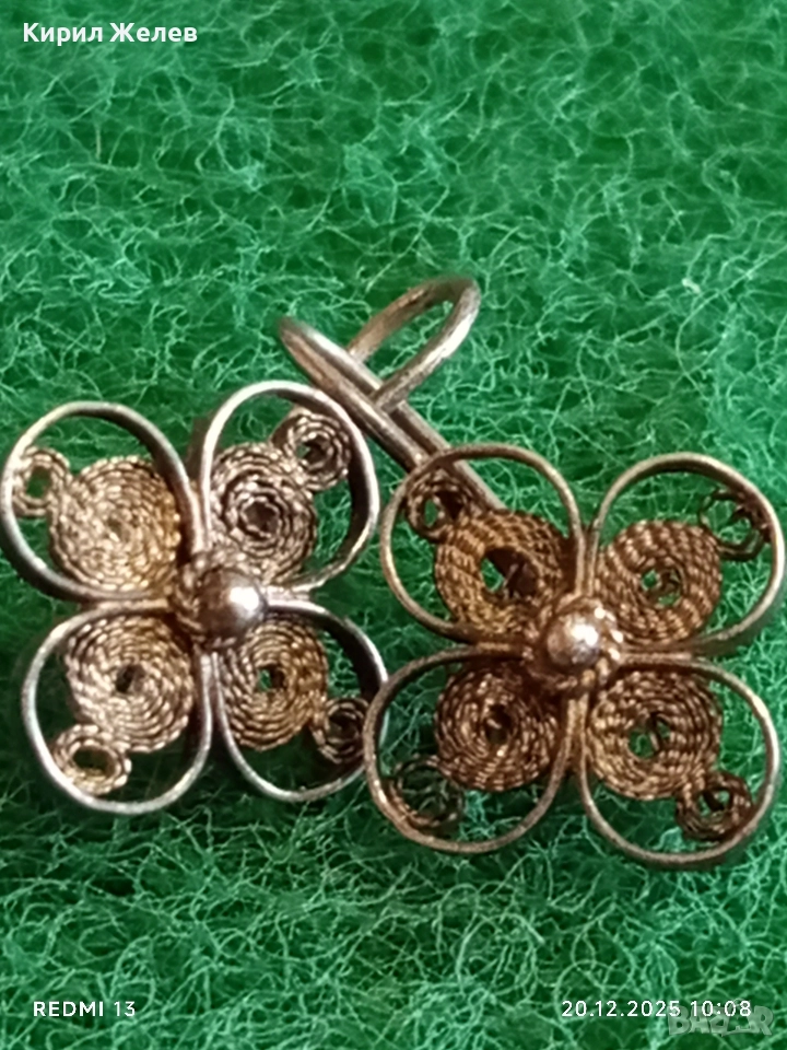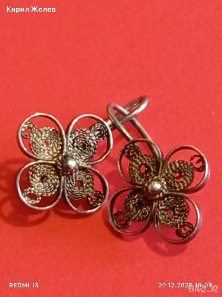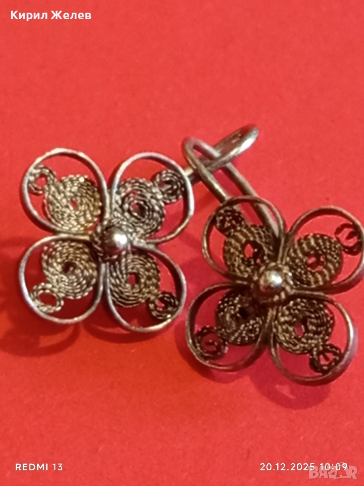 ВИНТИДЖ СРЕБЪРНИ ФИЛИГРАННИ ОБЕЦИ с ФЛОРАЛЕН МОТИВ РЪЧНА ИЗРАБОТКА 34058