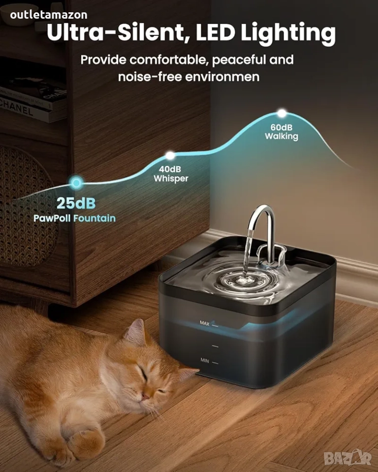 Фонтан за котки, 2,2 л фонтан за пиене за котки и кучета, супер тих