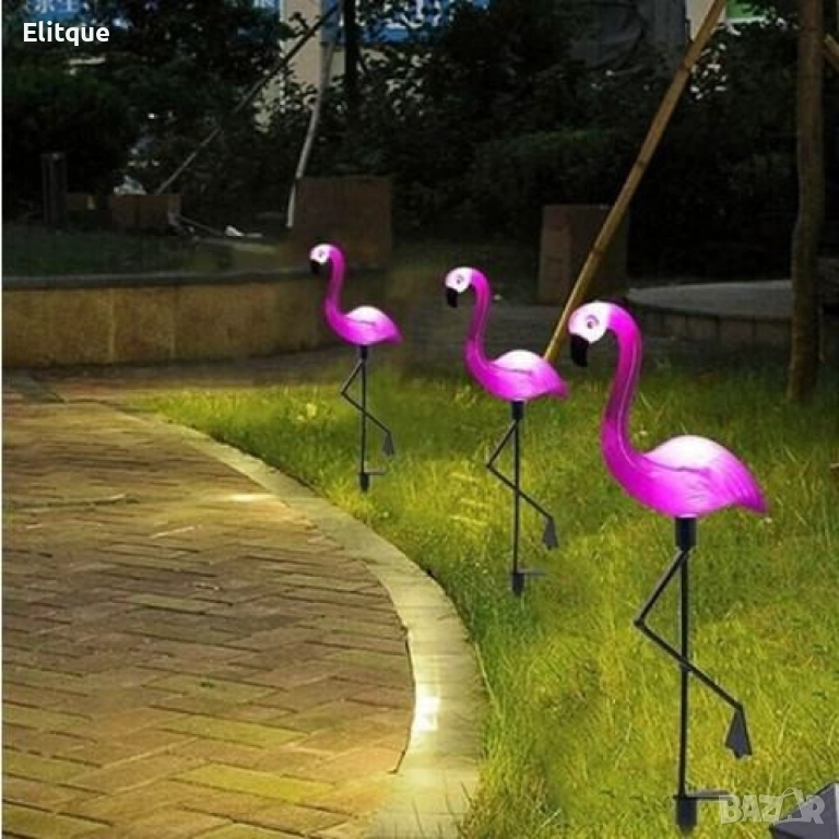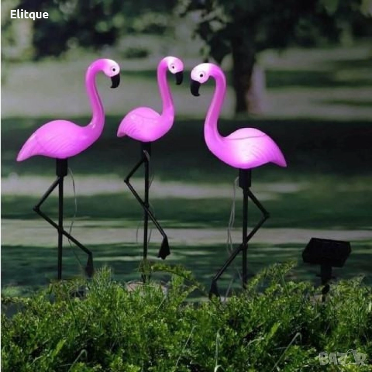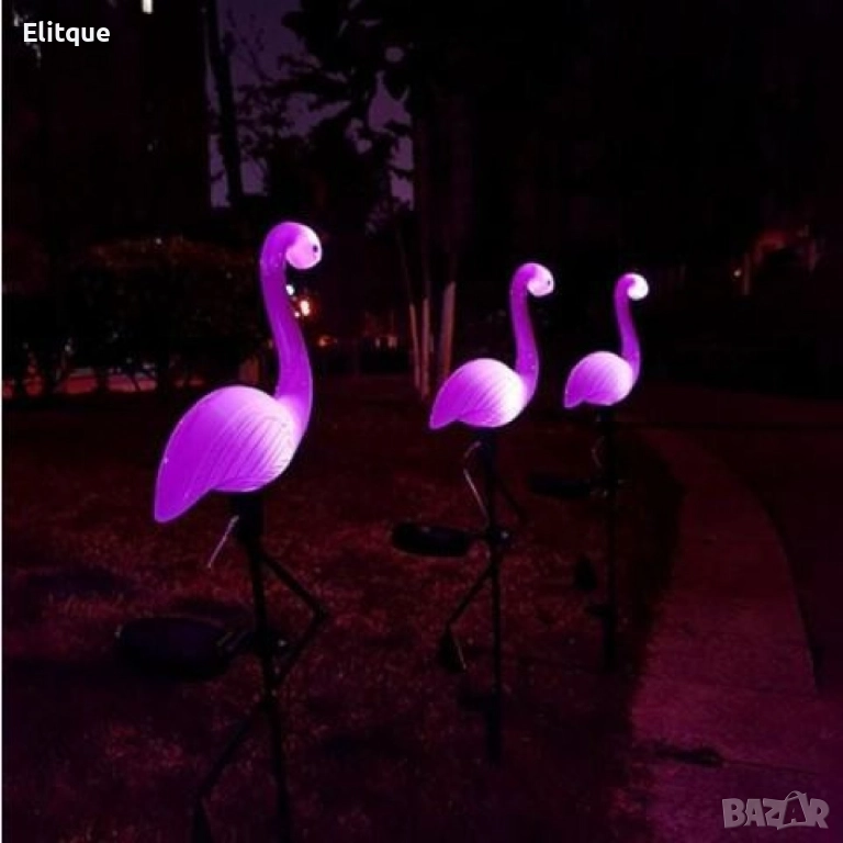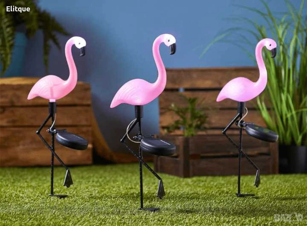 Декоративна соларна лампа във формата на фламинго - 3бр в комплект