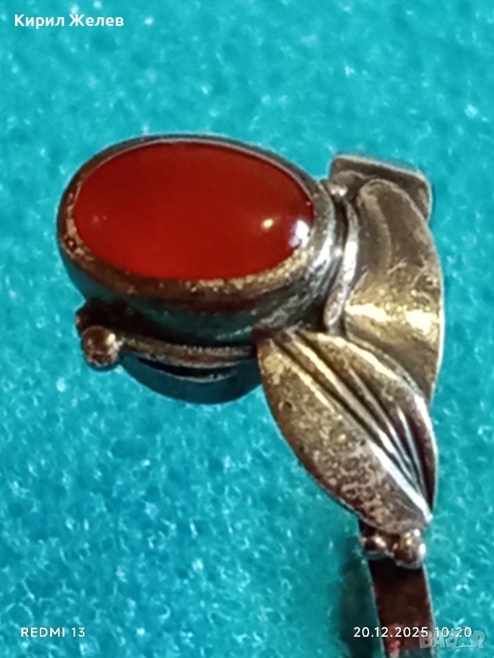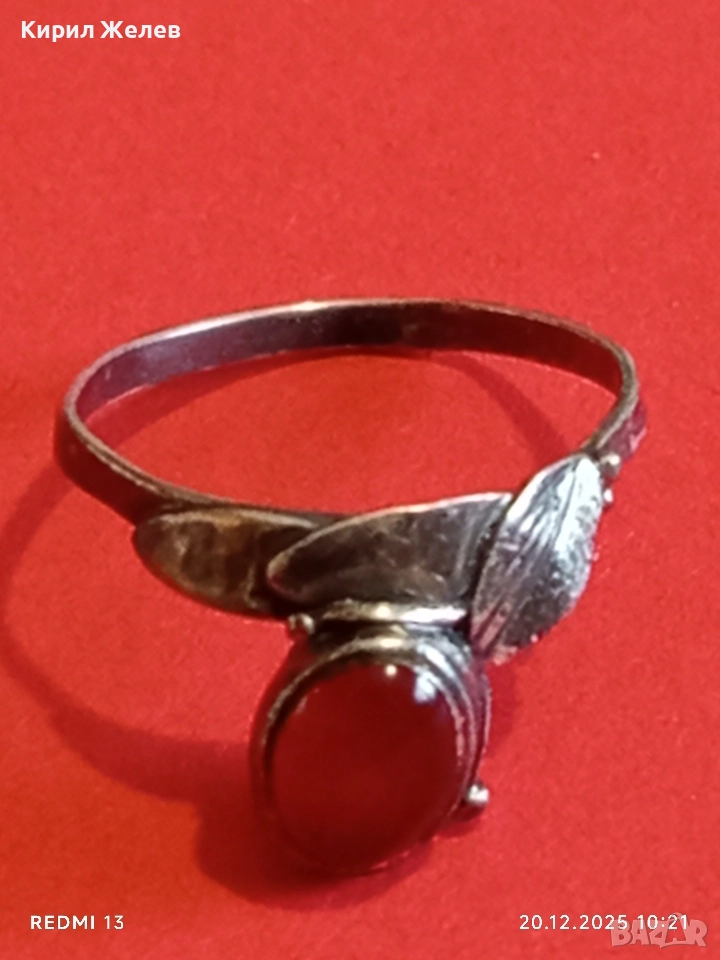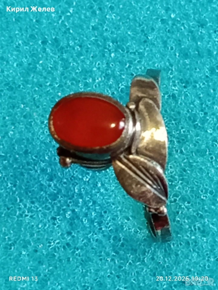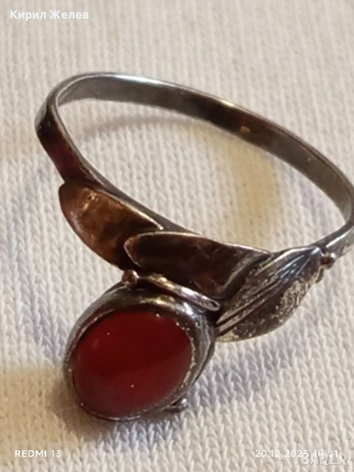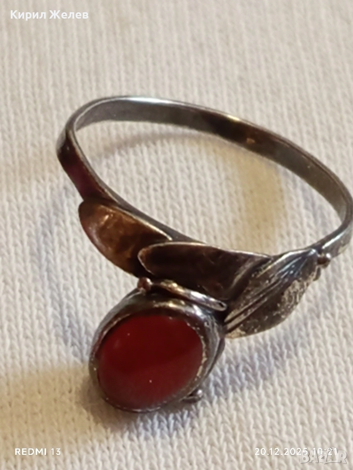 ВИНТИДЖ СРЕБЪРЕН ПРЪСТЕН с ФЛОРАЛЕН МОТИВ и ЮВЕЛИРНО ПОЛИРАН КОРНЕОЛ 34032