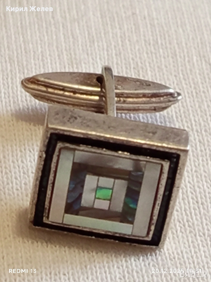 ВИНТИДЖ СРЕБЪРНО КОПЧЕ за РЪКАВЕЛИ с ЦВЕТЕН СЕДЕФ ЮВЕЛИРНА ИЗРАБОТКА 34019