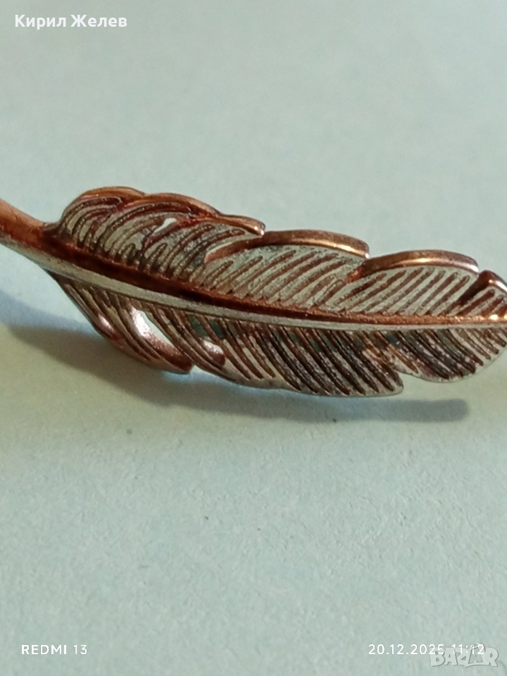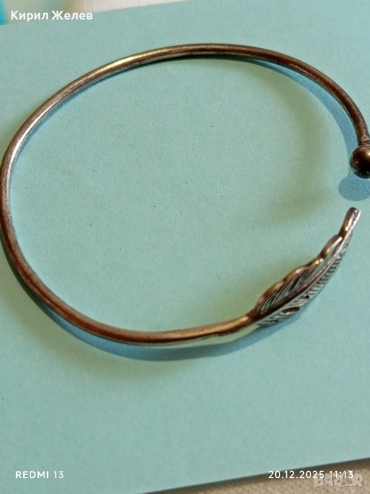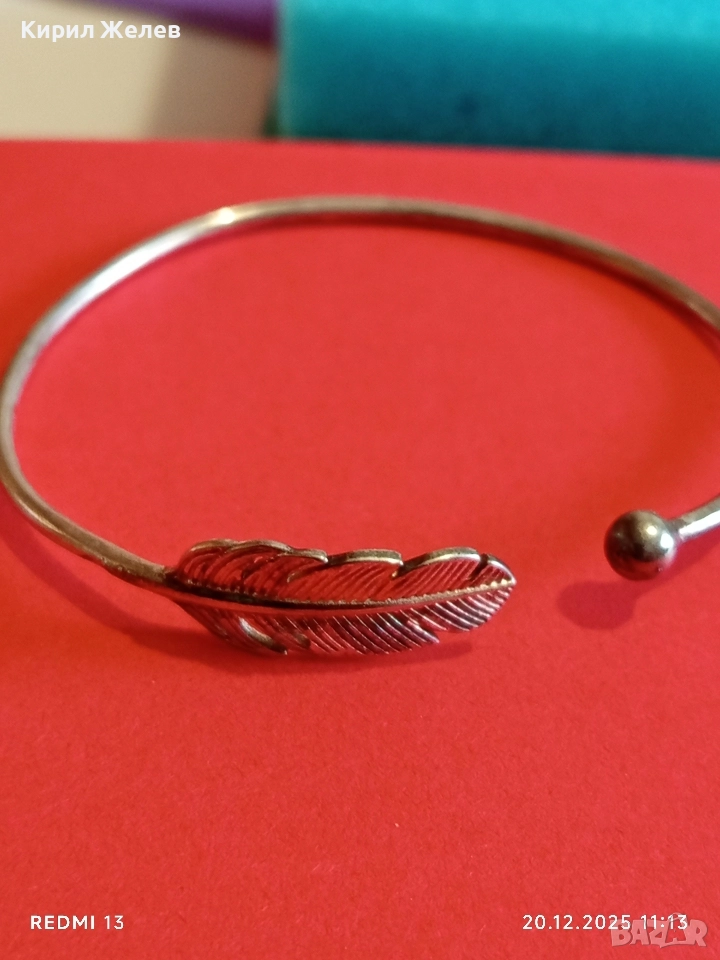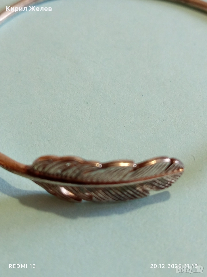 СРЕБЪРНА ОТВОРЕНА ГРИВНА с МОТИВ ПЕРО МАЙСТОРСКА ИЗРАБОТКА 13777