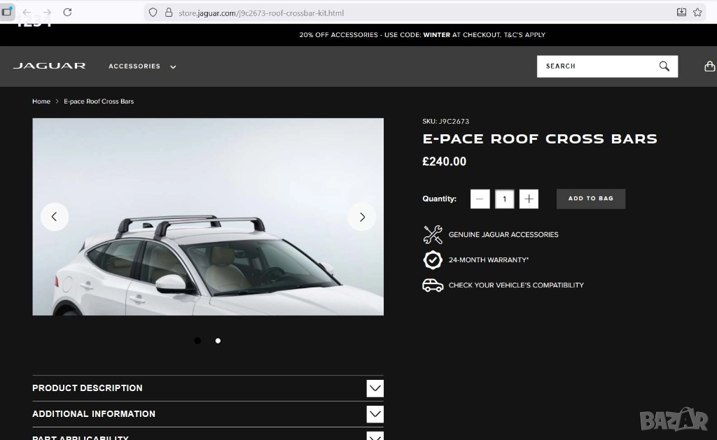 Оригинален алуминиев багажник за JAGUAR E-PACE X540 → Обява 52855666