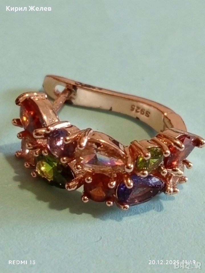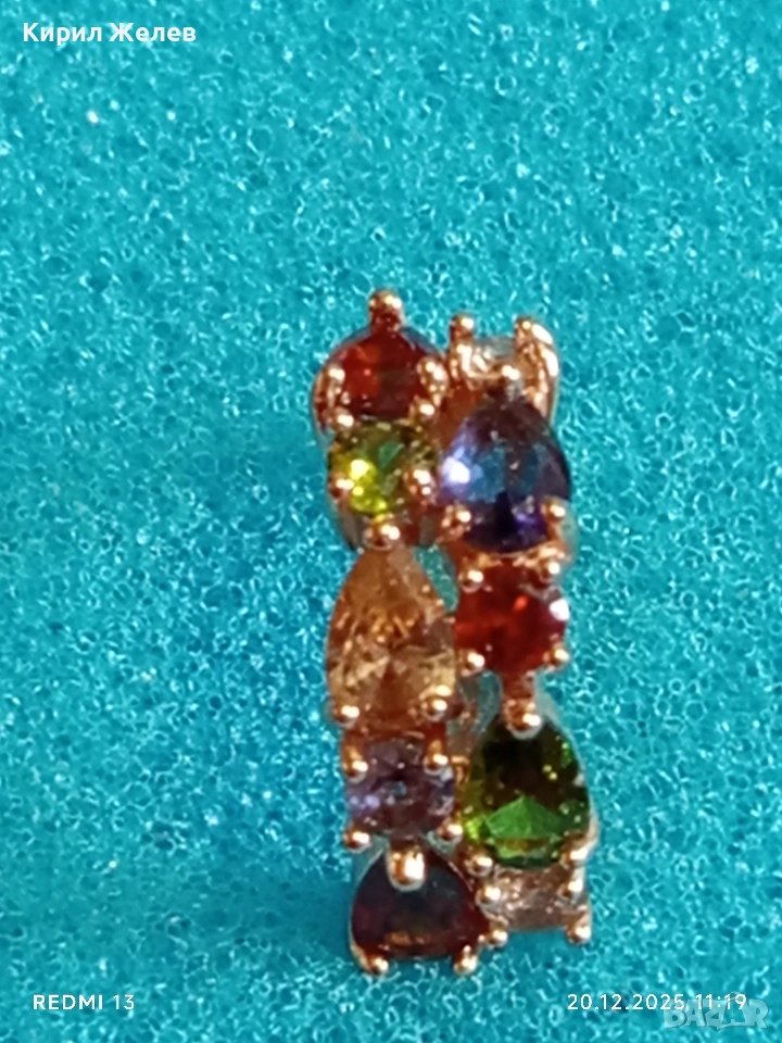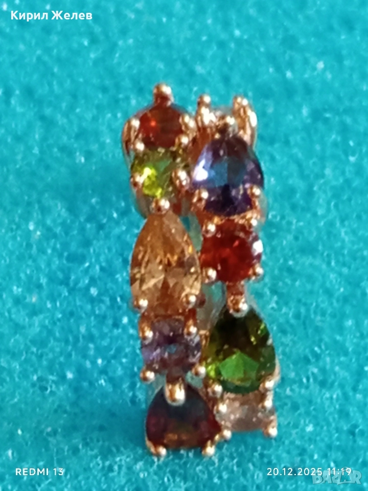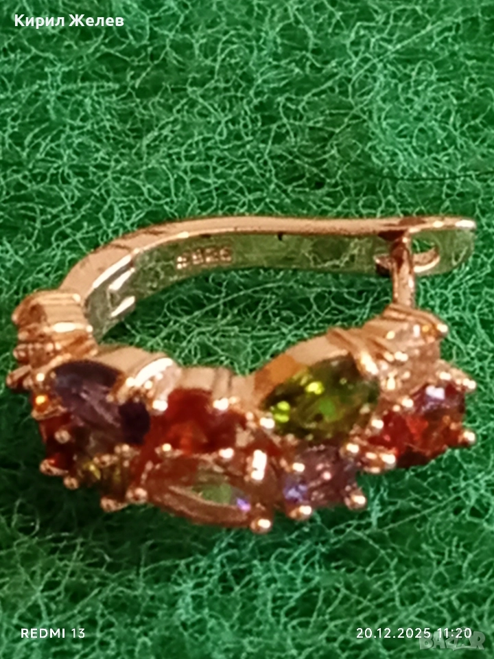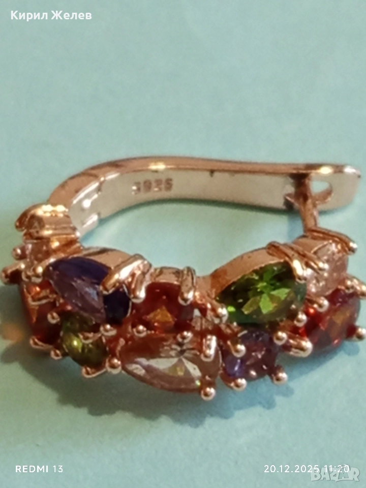 ДАМСКА СРЕБЪРНА ОБЕЦА с РАЗНОЦВЕТНИ КРИСТАЛИ ПОЗЛАТА ЮВЕЛИРНА ИЗРАБОТКА 51094