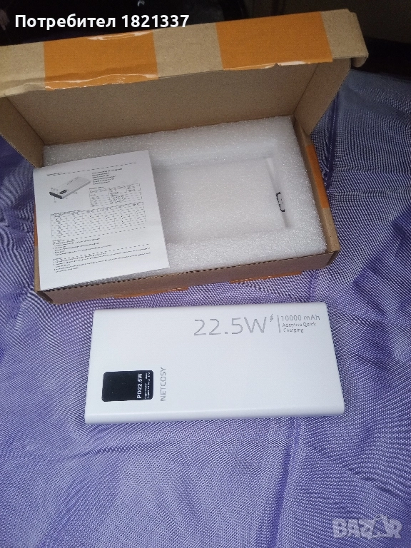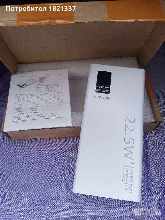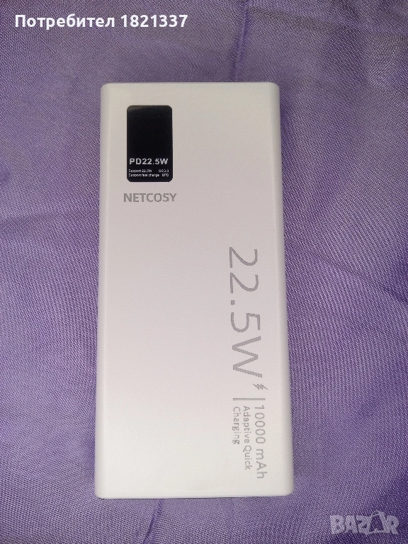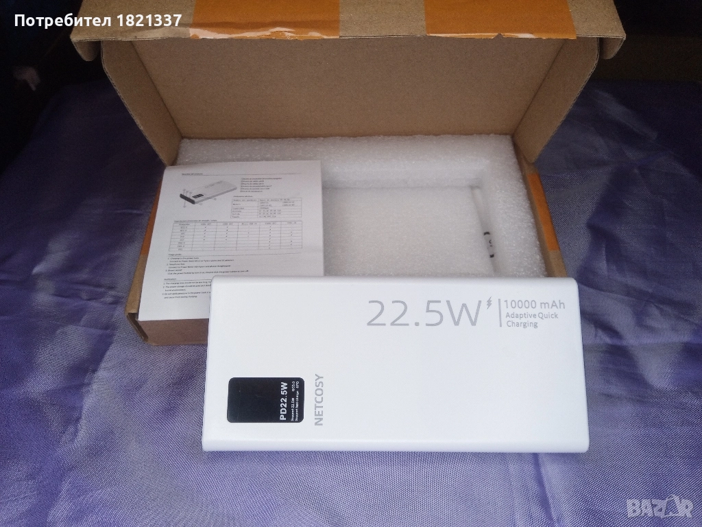 Преносима батерия 22,5W Капацитет 10000 mAh. Бързо зареждане. С два USB 3.0 C-tybe. Led дисплей.