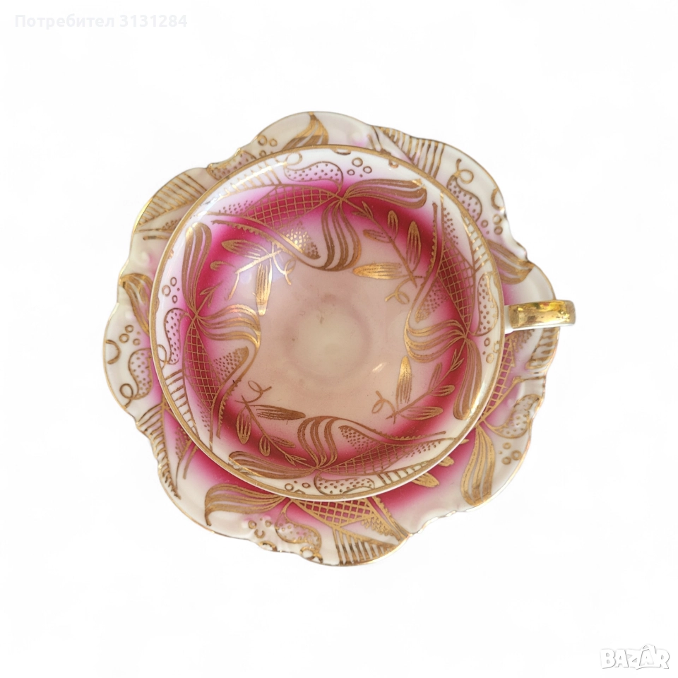Великолепна двойка за чай в бароков стил в розово-червено злато от стара немска фабрика... Великолепен подарък! Състоянието е перфектно!