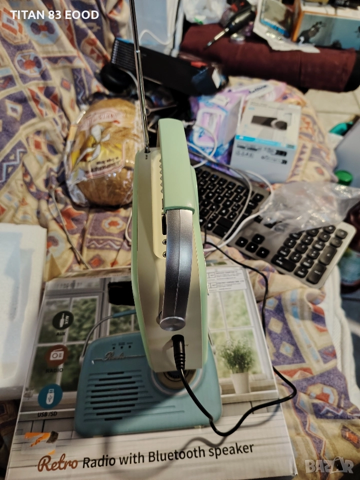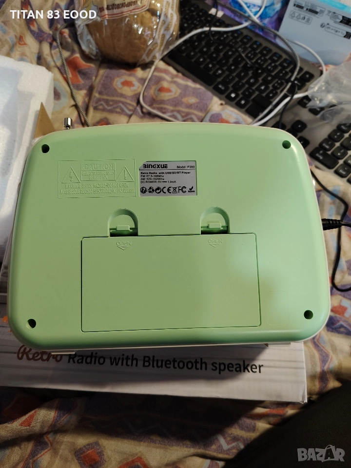 Преносимо радио AM/FM, Bluetooth, поддържа SD карта и USB, размери 21x5.5x15cm, захранване с вградена батерия с батерии или от контакт