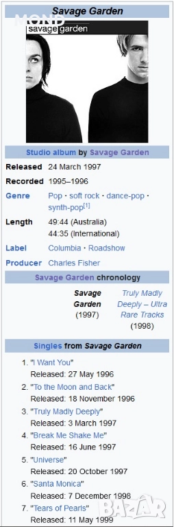 Savage Garden - Savage Garden (CD) → Обява 52857263