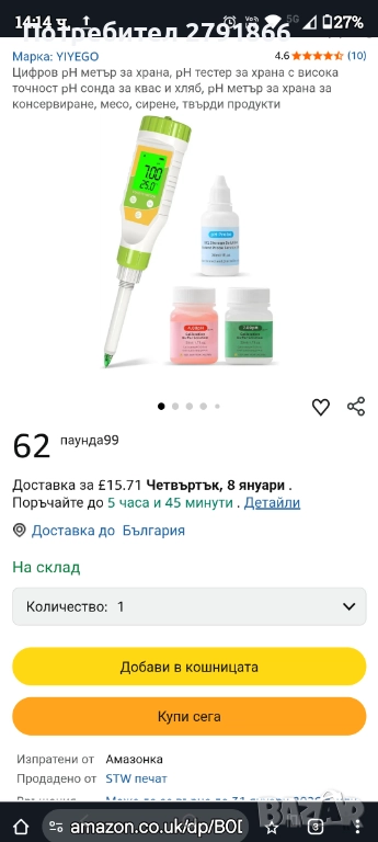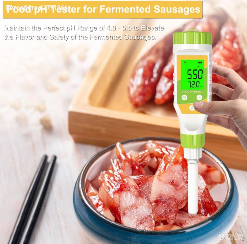 Цифров pH метър за храна с висока точност pH сонда за квас и хляб,сирене,месо и др.