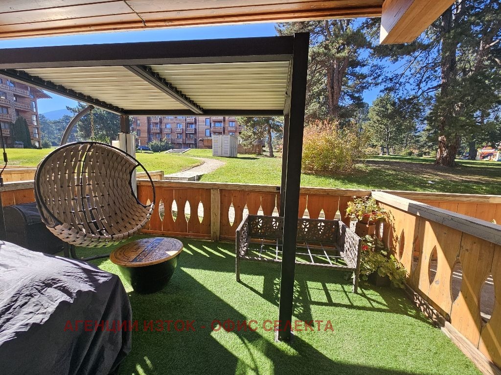 Партерно студио с уникална южна тераса-двор с най-прекрасната гледка! в Пирин 1 с/у СПА ц-ра на 5зв. к-с Пирин Голф & СПА, дизайнерски обзаведено и оборудвано за целогодишно ползване и отдаване под наем, с климатик, южно! С директен излаз към топъл външен басейн и детска площадка. Прекрасна тераса-двор! с пергола, люлка, с уникални гледки. Такса 17Е/квм. В хотелската част в сграда 3 на хотела на ет. 3 над топъл външен басеин и топла връзка със СПА ц-ра , продаваме еднопространствено прекрасно дизайнерско студио 50квм за 125000Е- пакетна цена за 2те - 245000 Е. Ексклузивно! Собственик 0889822424