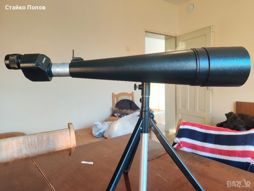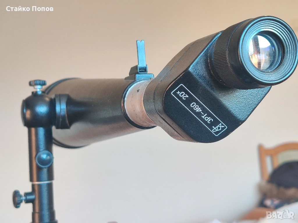 Оптична зрителна тръба СССР. Тръбата е сглобена от две съветски тръби оптиката и триногата е от зрт-457 а призмите и окуляра са от зрт-460 така се е получава голямо зрително поле и голям диаметър на обектива 76мм и перфектна картина с увеличение от 25 пъти. Картината е отлична с голямо зрително поле и фокусировка през окуляра.