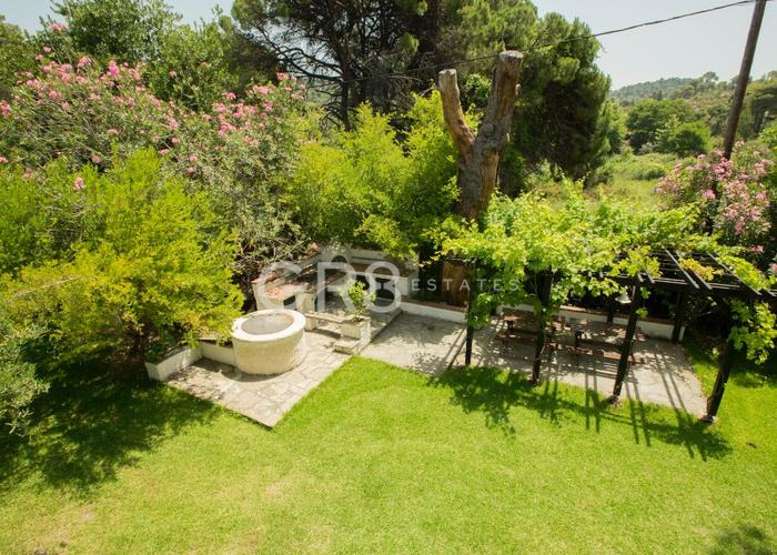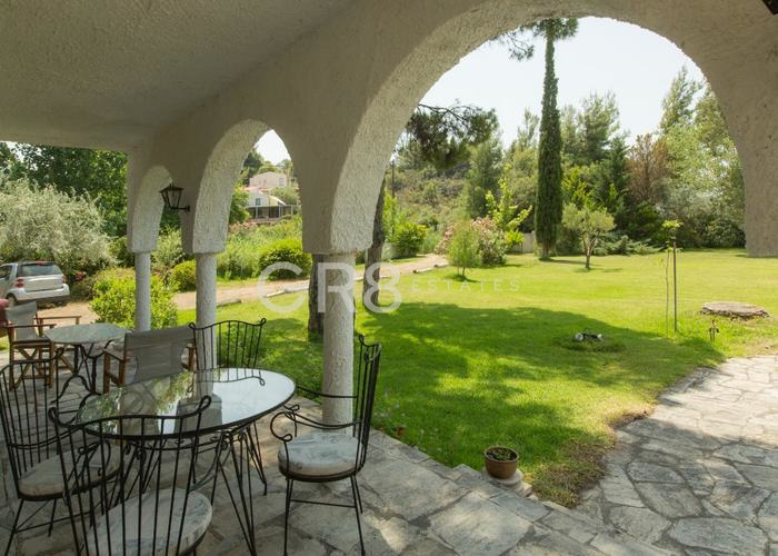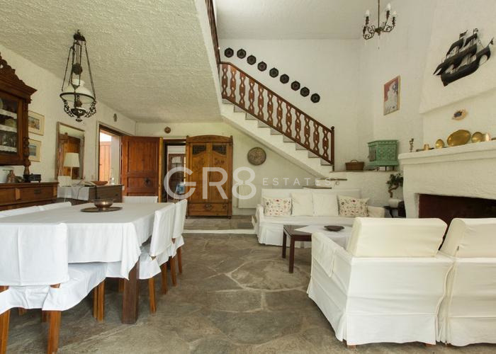 GR8 ESTATES, ви представя една романтична къща с типично Дорийска колонада и върешно пространство, сякаш излязла от филм на Дзефирели. Това е място на което може да получите пълна наслада от красотата на Средиземно море, с усамотения син залив с плаж пред имота, прекрасната градина и красиви пинии. В тихата клисура, пълна със зрели дървета и храсти, къщата сякаш е прегърната от хълмове и слънце.