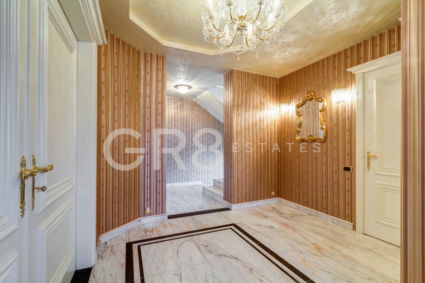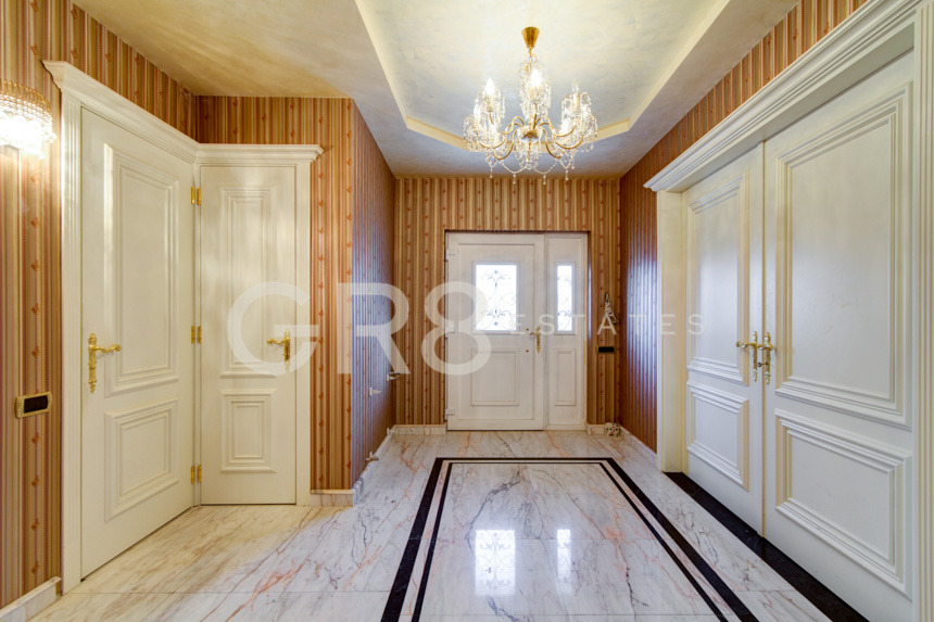 GR8 Estates ви представя къща, бивша резиденция, обновена с луксозен дизайн във френски стил. От фасадата и специалното парадно стълбище в стил дворец 'Кобург', през специалните мраморни настилки до бравите на вратите, всичко е изработено до най-малкия детайл с много вкус и внимание. Елегантната ръчно изработена камина в хола е изящно произведение на изкуството в стил 'Балморал'.