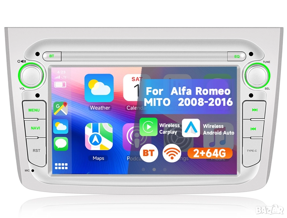 Мултимедия за Alfa Romeo MITO, навигация, Android, плеър, 2DIN, Андроид, двоен дин, Alfa Romeo MITO
