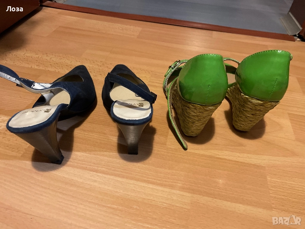 Обувките са като нови - зелените са само пробвани, тъмно сините са носени 1-2 пъти