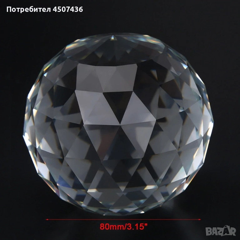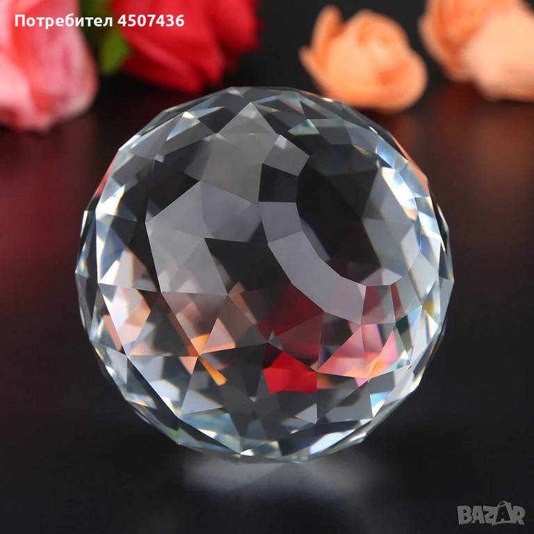 С фасетиран диамантено шлифован дизайн на повърхността, тази кристална сфера може да се използва като блестящ иризиращ слънчев ловец.