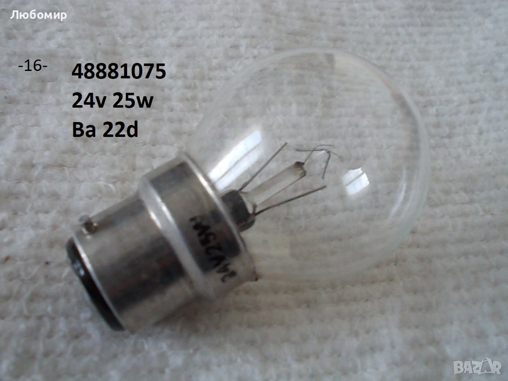 16. Лампа 24v 25w Ba22d USSR - неизползвано - 1 бр. х 8 лв.