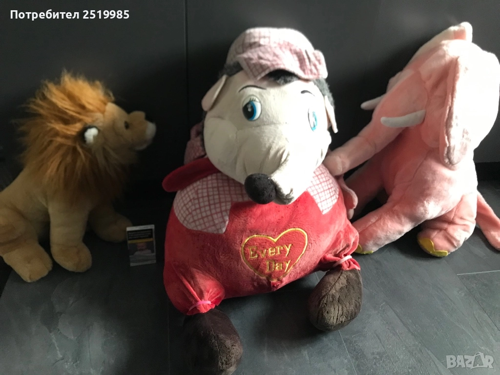 Продавам пълен човал с ГОЛЕМИ плюшени играчки като мамут , цар лъв , слона от ледена епоха , Мече - Панда , и много други . Две от играчките даже са пееще , само трябва да им сменят натерийте