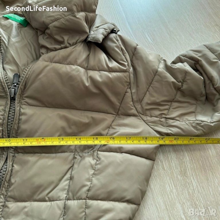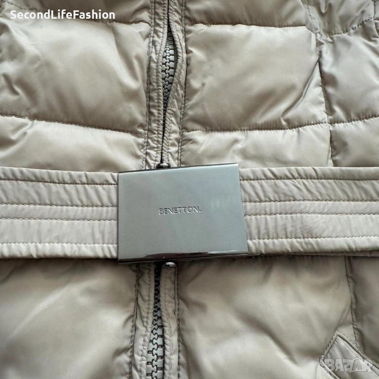Дамско яке United Colours Of Benetton с качулка, размер UK М резедаво с колан → Обява 52858700
