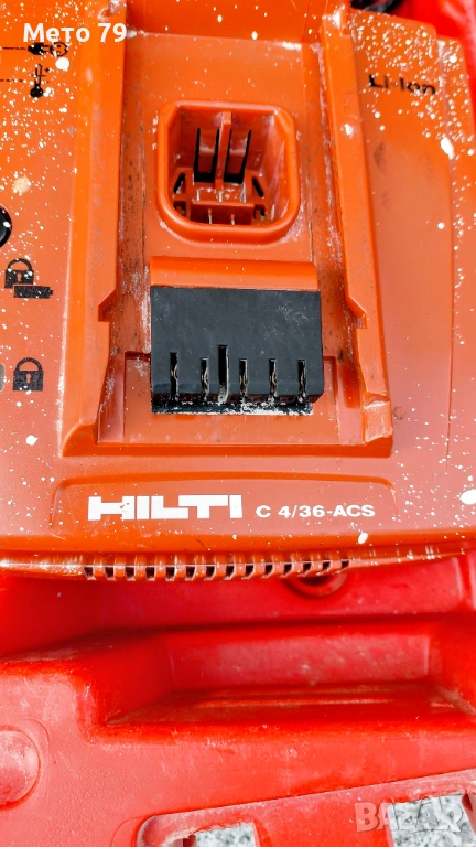 Пълен комплект с една перфектно работеща батерия 4.0/36v бързо зарядно C 4/36-ACS което може да зарежда всички батери LI-ION без нурон и два диска Хилти,куфар