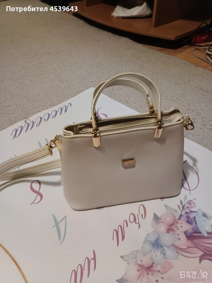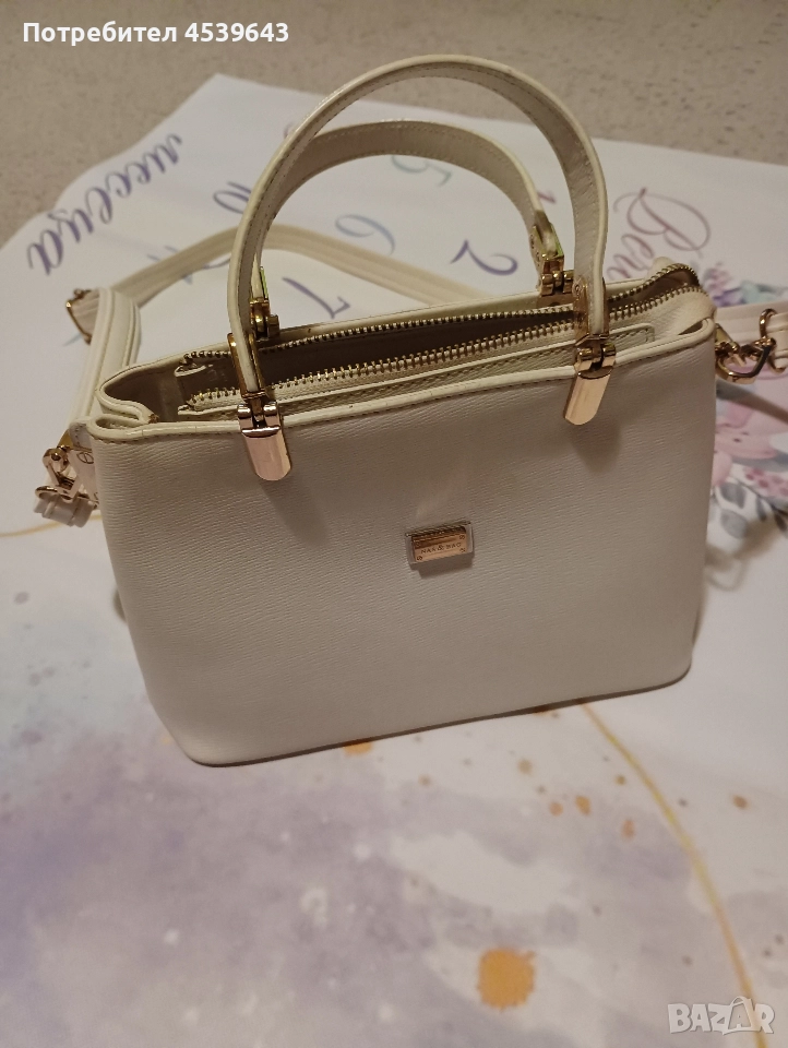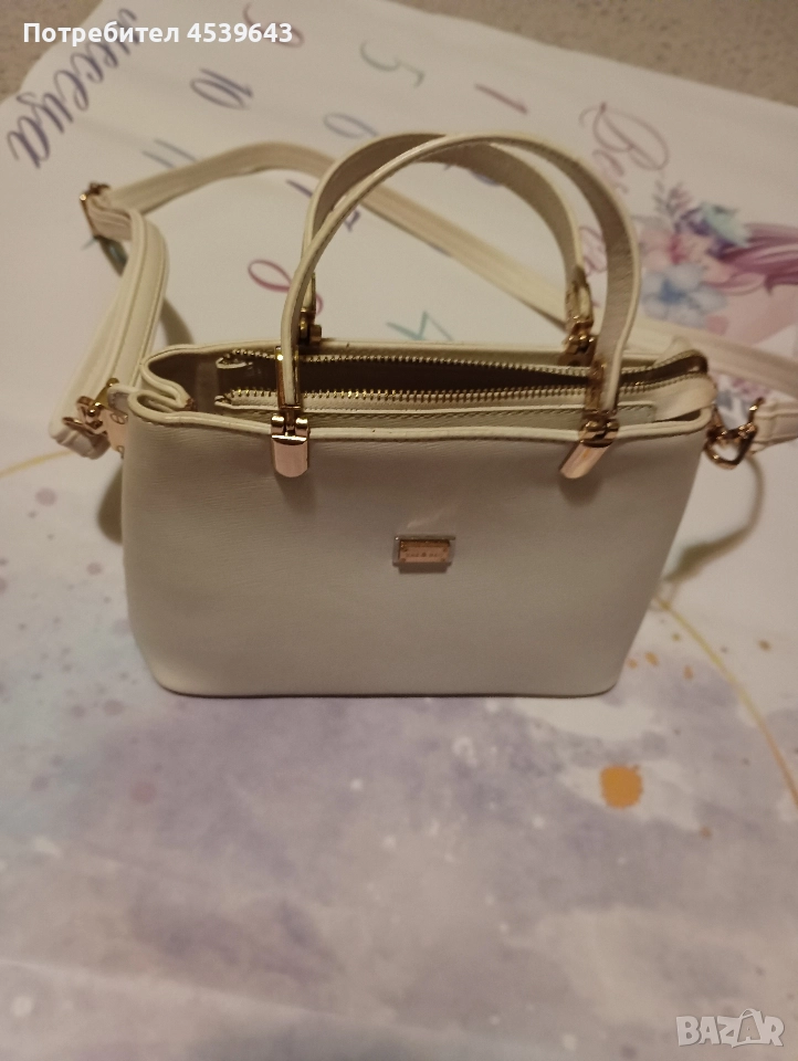 Елегантна дамска бяла чанта с дръжка → Обява 52859392