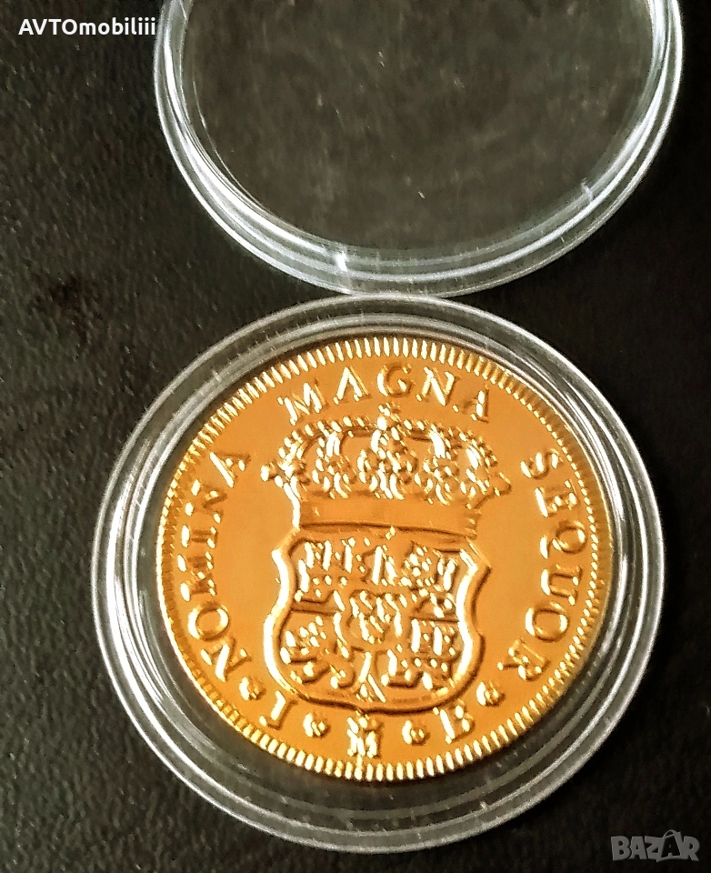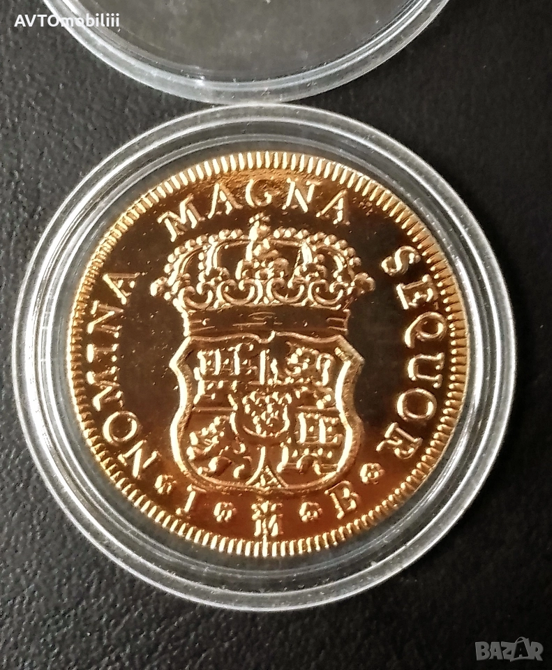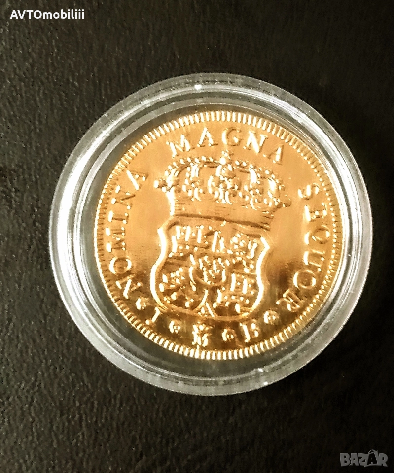 Продавам позлатена с 24 карата злато Испанска средновековна монета в защитна капсула.