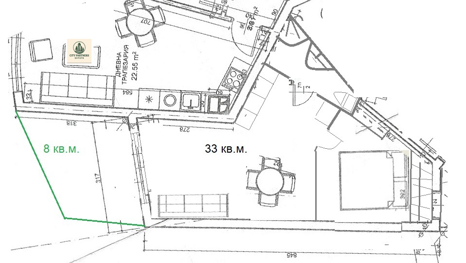 Предлагания самостоятелен обект се състои от: 29кв.м. голяма дневна с кухня, и с възможност за обособяване на преходна спалня, 4 кв.м. баня с тоалетна, 8 кв.м. обособен озеленен двор.