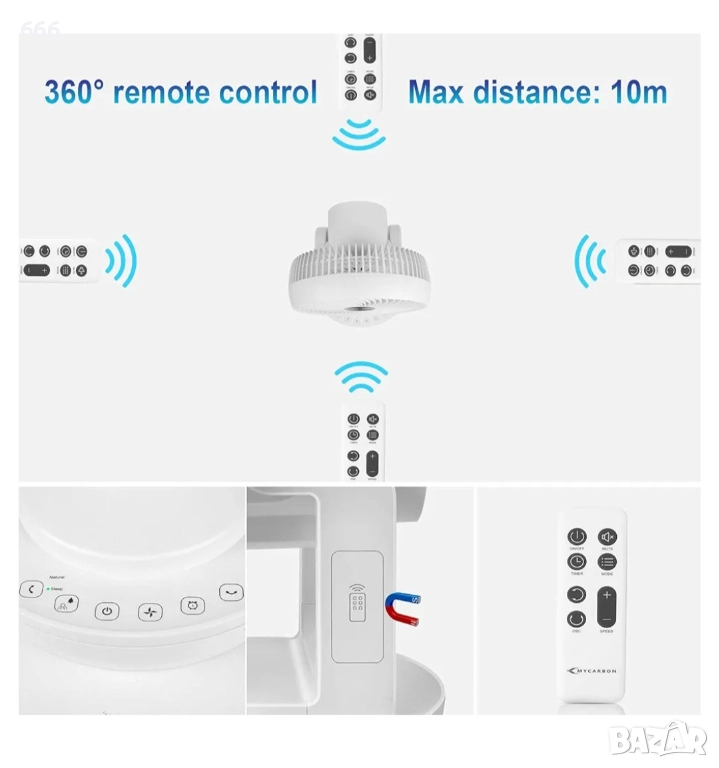 Интелигентен сензорен панел + 360° дистанционно управление с пълен ъгъл♥ Цифровият вентилатор с сензорен панел е лесен за употреба, силно усещане за технологии. Ако искате да управлявате тихия настолен вентилатор от по-голямо разстояние, дистанционното управление може да работи на 360° отпред и отзад, ляво и дясно. Максималното разстояние на дистанционното управление може да бъде до 10 метра.