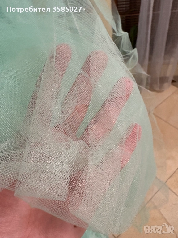 Тюркоазена рокля тип принцеса, използвана за фотосесия за рожден ден. Много лека, ефирна и изключително приятна за носене – създадена за усмивки и красиви спомени.
