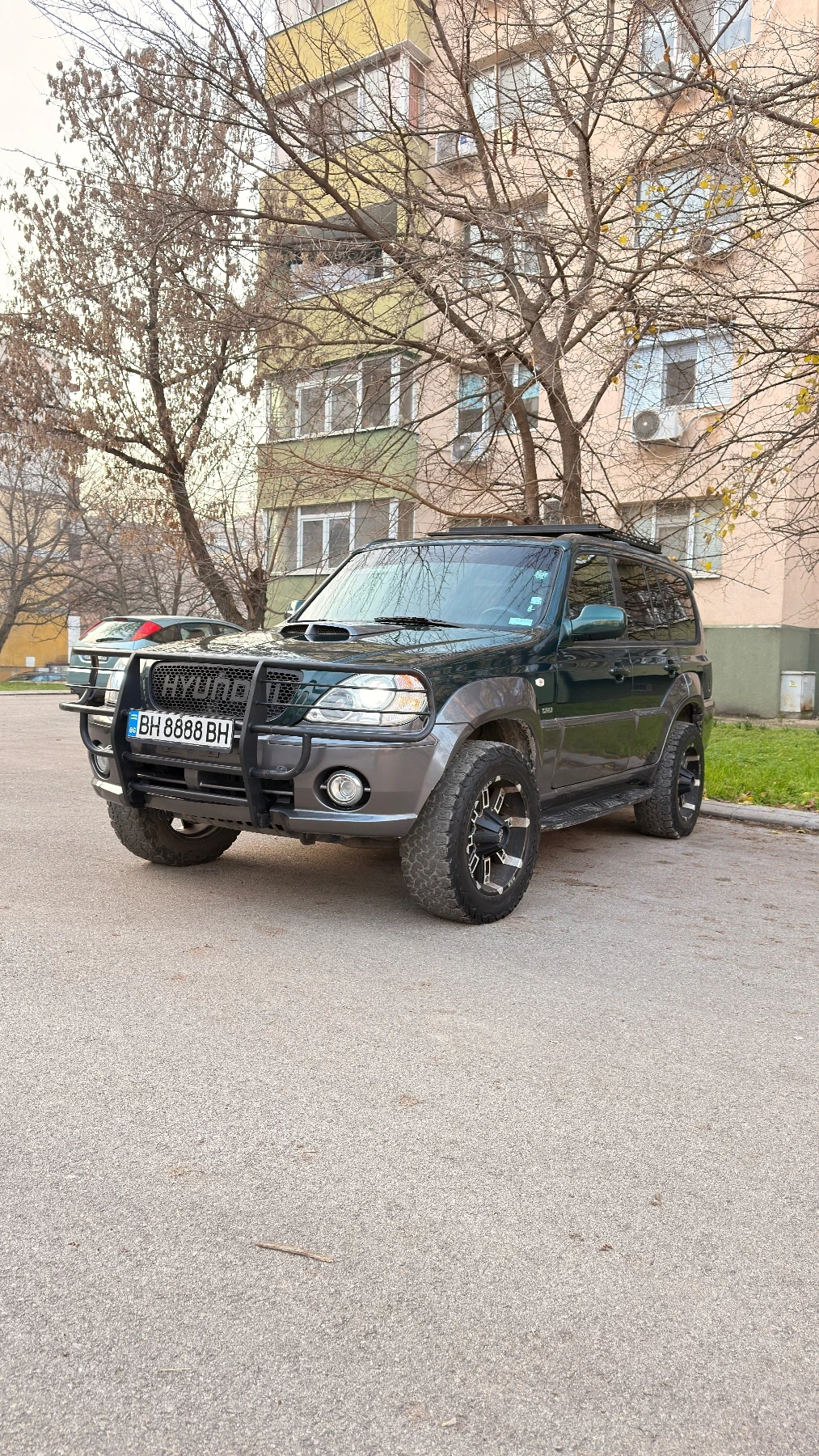 Hyundai Terracan личен автомобил в много добро състояние. Джипът е купуван нов от България и е на реални 210 000 км. Направена е конверсия с механична помпа и дюзи, като по този начин е отстранен добре познатият проблем със заводската система. Автомобилът е повдигнат с около 7 8 см, но никога не е използван за офроуд. Поддържан е редовно, като са подменени амортисьори, пружини, биалетки и други консумативи. Оборудван е с 18 джанти и All-Terrain (AT) гуми. Към автомобила се предлагат и много допълнителни части, които не са монтирани: чисто нов шнорхел сенник (козирка) за предно стъкло теглич метална стойка за резервоар предпазна преграда/решетка за багажник (подходяща и за куче) чисто нови горни и долни носачи с тампони и други За повече информация и оглед моля, обадете се на посочения телефон.