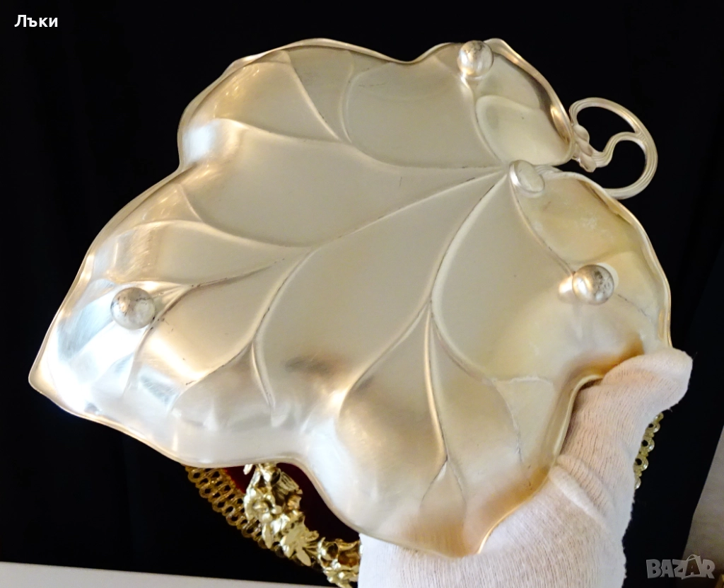 ефектен дизайн на Лозов лист с извита дръжка и зряло грозде,издържана в стил Art Nouveau.Дължина 24 см.,ширина