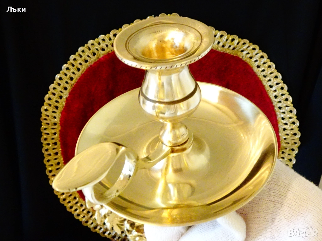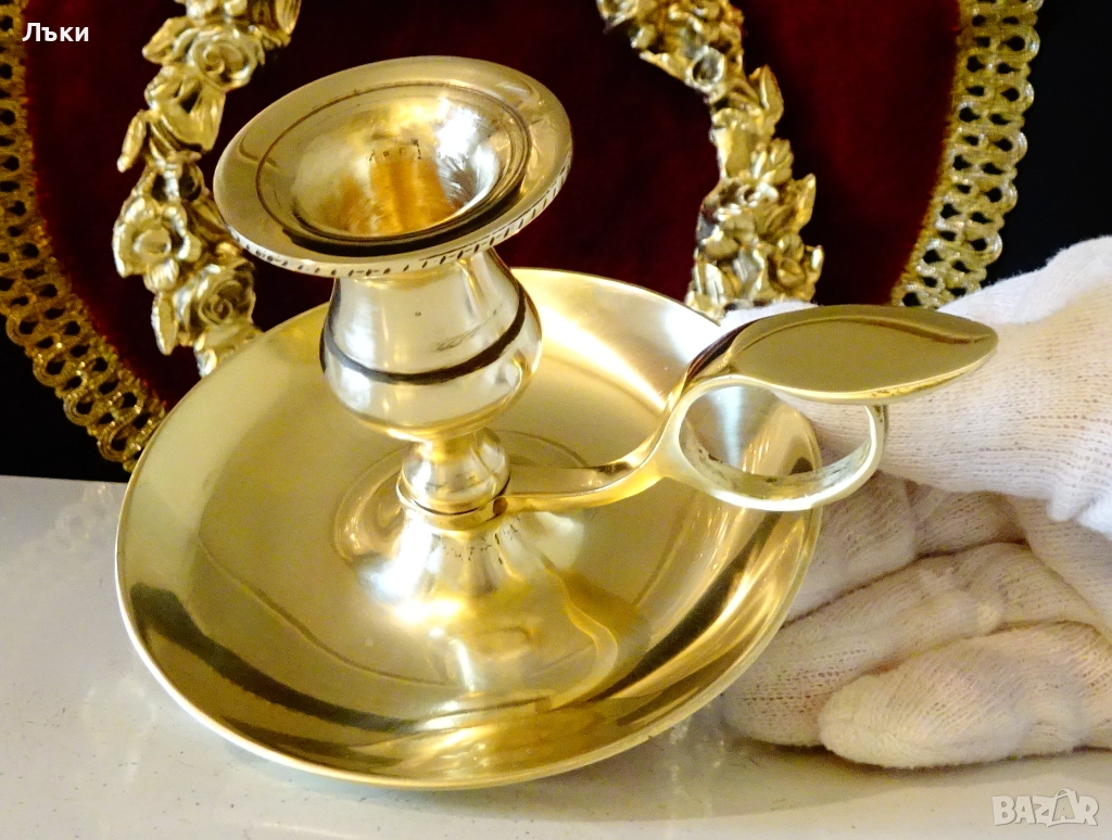 Викториански свещник с дръжка,преносим свещник,майсторска