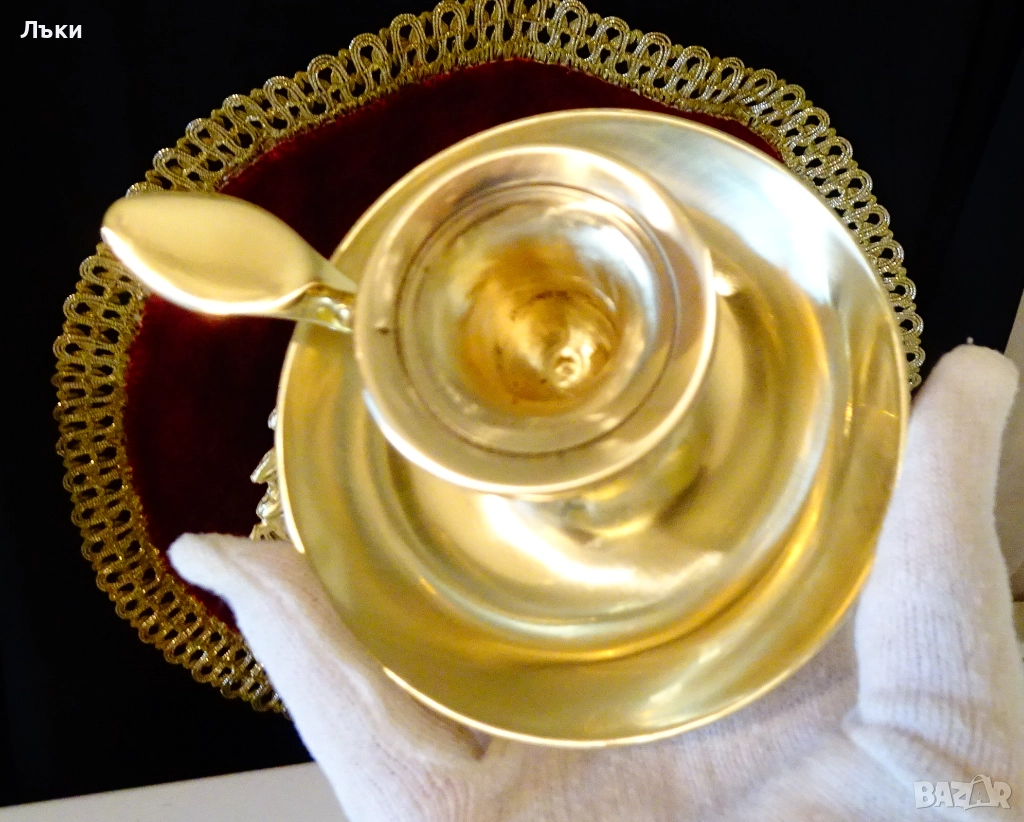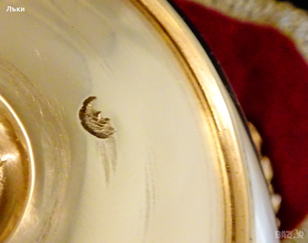 периферията и с ефектно извита дръжка,блести като златен.Височина 8