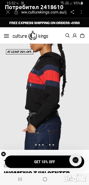 ОРИГИНАЛЕН Дамски пуловер с качулка, обличан два пъти - нов!