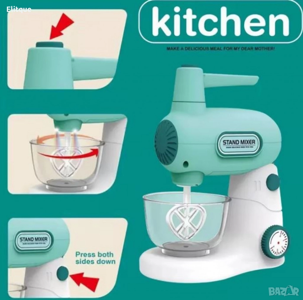 Цветове: Оранжев, розов, зелен; Захранването се осъществява с 2 броя 1,5V AA батерии (не са включени). Материал: Пластмаса; Размер на миксера: 9,5 х 16 х 20,5 см.; Размер на опаковката: 28,6 х 10,2 х 25 см.; Аксесоари: Портокал, ягода, грозде, яйца.; Ефекти: Звукови и светлинни.; Подходяща възраст: Над 3 години.