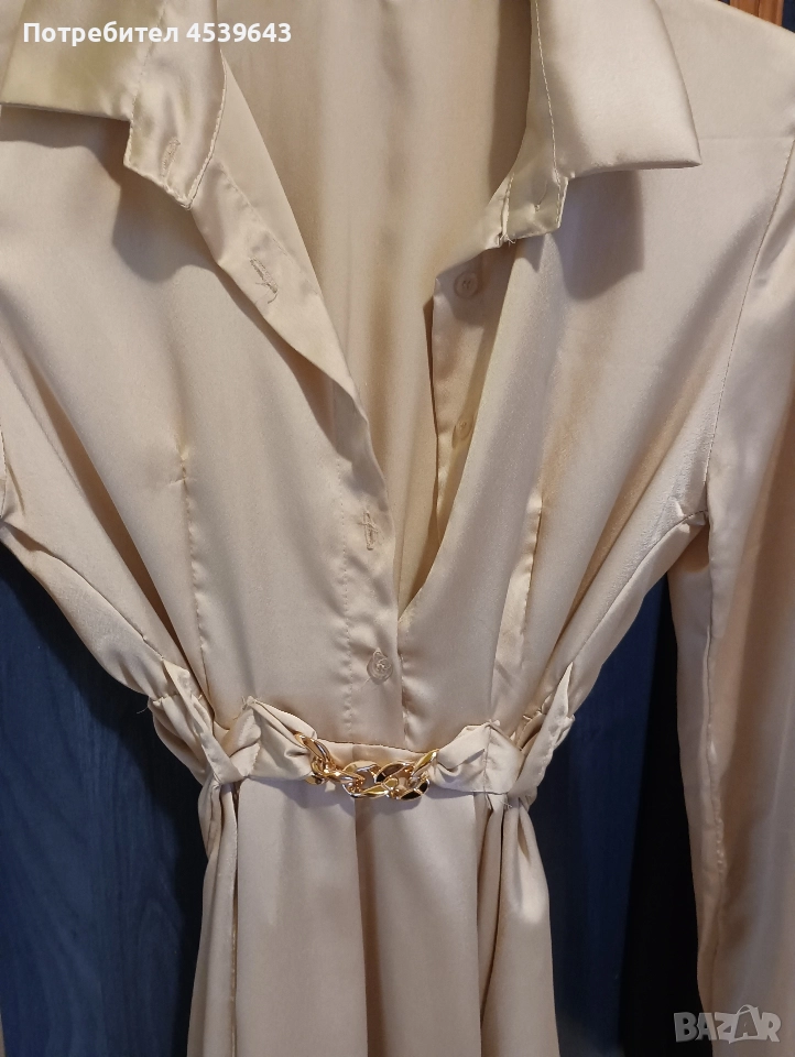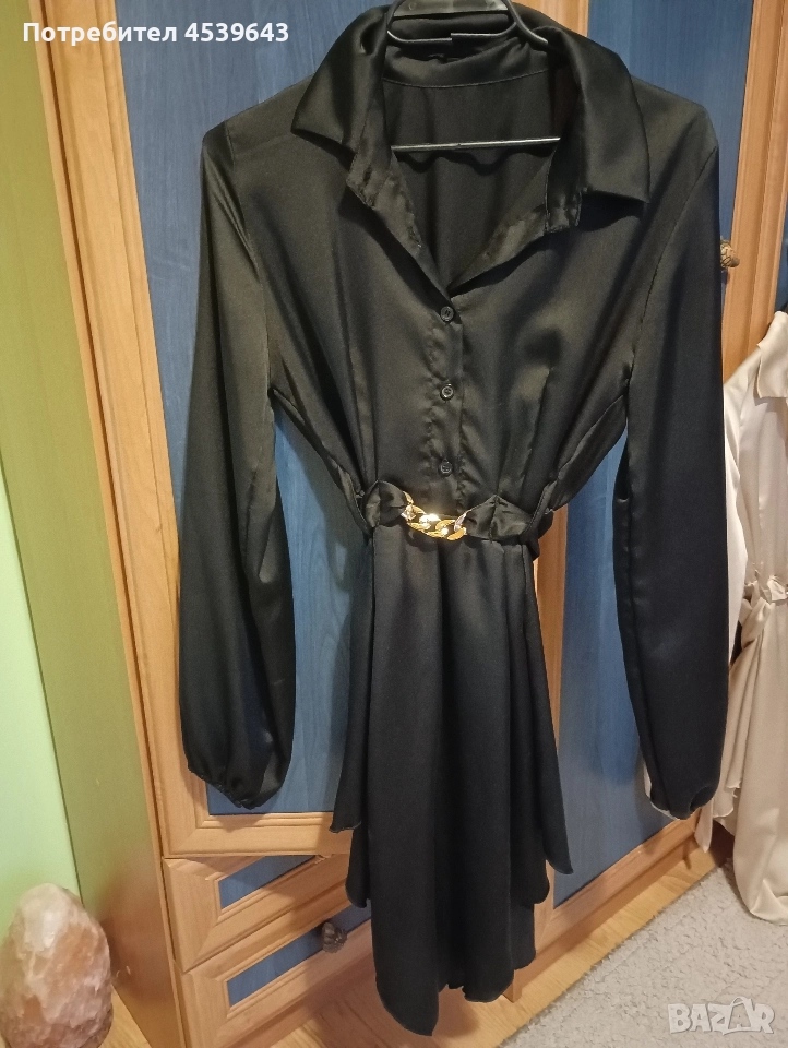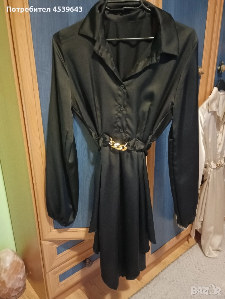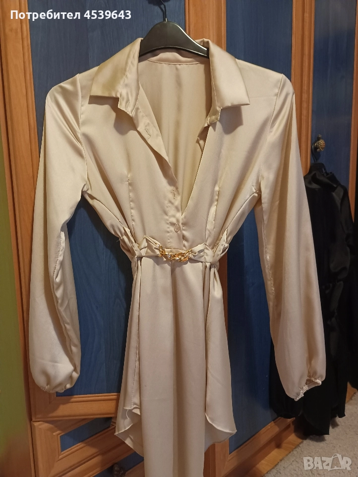 Продавам елегантни дамски рокли в бежово и черно с елемент отпред и колан.