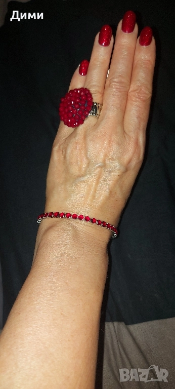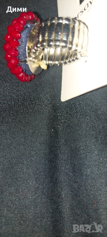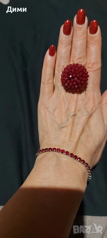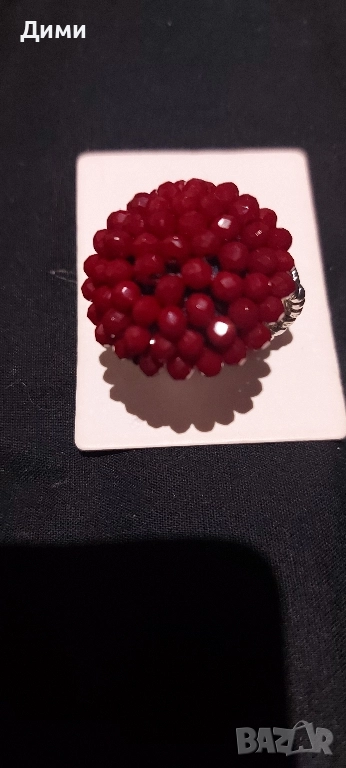 Пръстен Малина с рубинени кристали..Пръстена е с разтегателна халка нов.