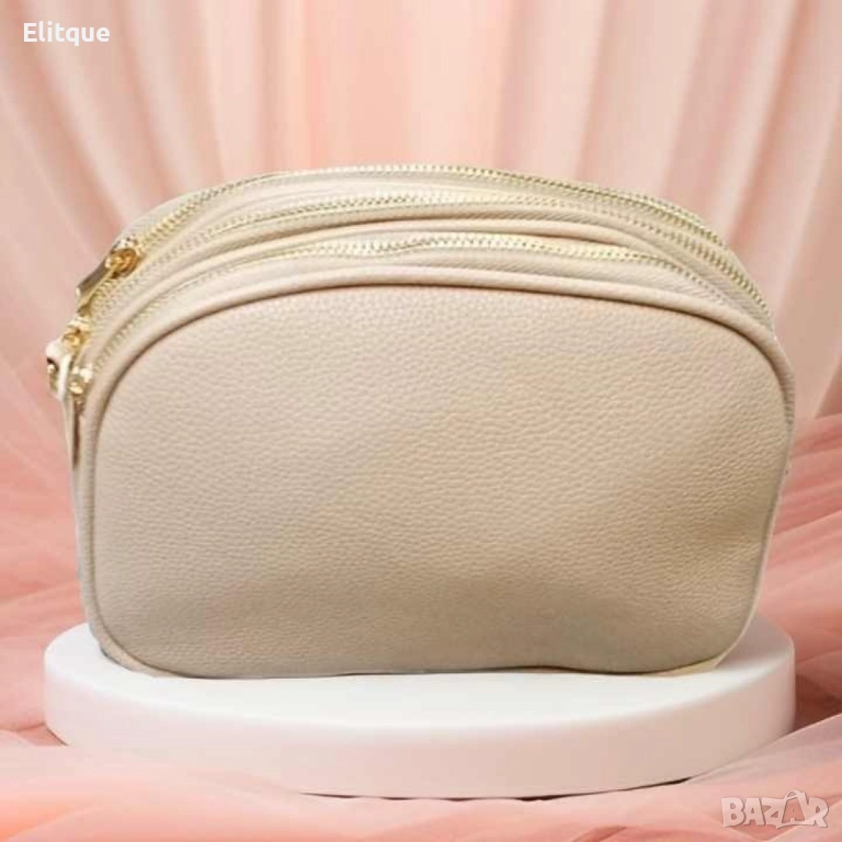 Дамската чанта с три прегради за през рамо е стилен и практичен аксесоар, предназначен за съвременната жена. Тя предлага оптимална организация с трите си отделни прегради, които осигуряват достатъчно пространство за всичките ви вещи - от мобилен телефон и портфейл до козметика и ключове. Регулируемата презрамка позволява комфортно носене през рамо или на кръст. Изработена от висококачествени материали и с елегантен дизайн, тази чанта е перфектна както за ежедневието, така и за специални поводи.