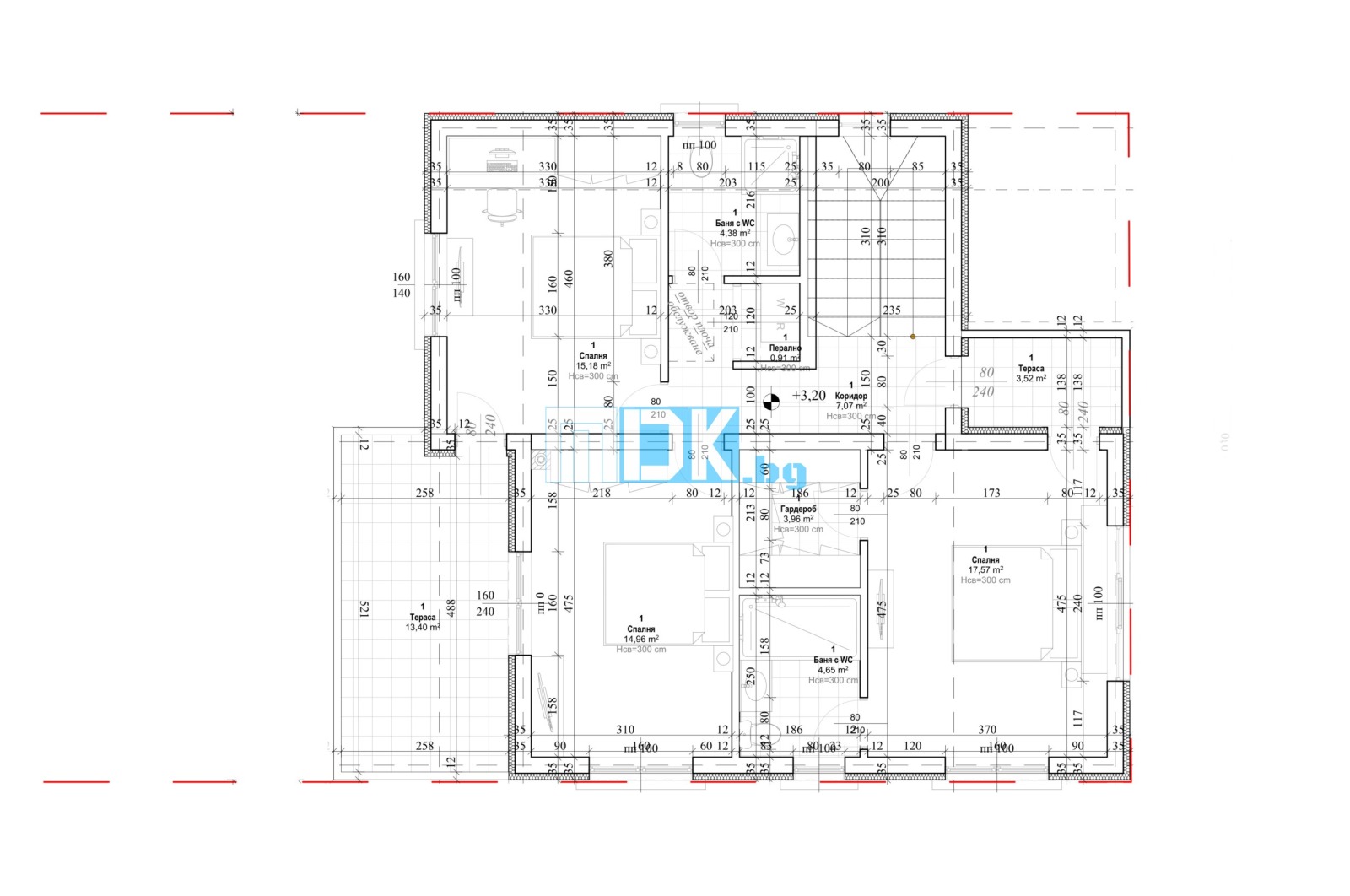 > 3 големи спални, едната над 17 кв.м., отделно собствена голяма баня, гардеробна и малка тераса с прекрасна гледка към града.