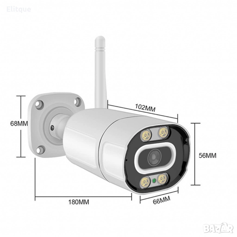 Външна 3MPX WiFi камера с метален корпус, нощно виждане до 40 метра и вградени микрофон и говорител