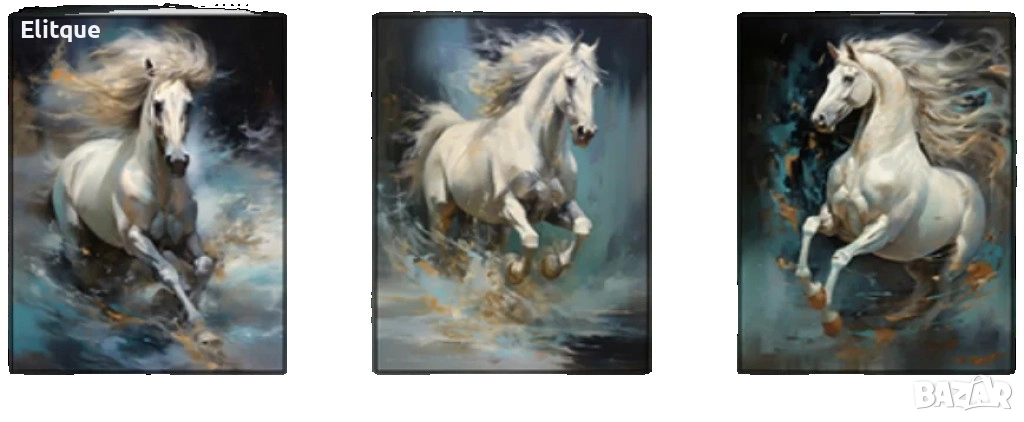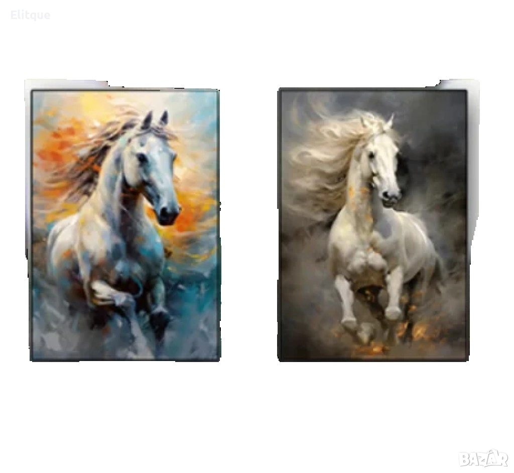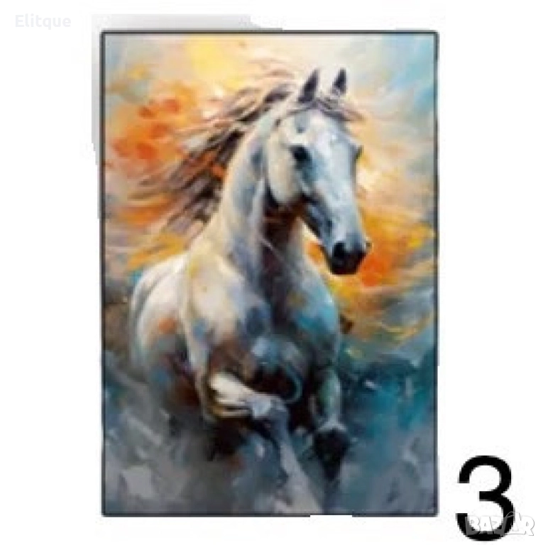 Представяме ви нашата колекция от картини с кон, предлагащи разнообразие от модели, които ще добавят елегантност и стил във вашия дом. Всяка картина е с размери 42х62 см, идеални за декориране на всяка стена в дома ви. Картините изобразяват красиви и динамични изображения на коне, които вдъхновяват и придават усещане за свобода и движение. С висококачествения си печат и детайлност, тези картини са перфектният избор за любителите на конете и изящното изкуство. Независимо дали търсите модерен, класически или абстрактен дизайн, нашата колекция предлага нещо за всеки вкус.