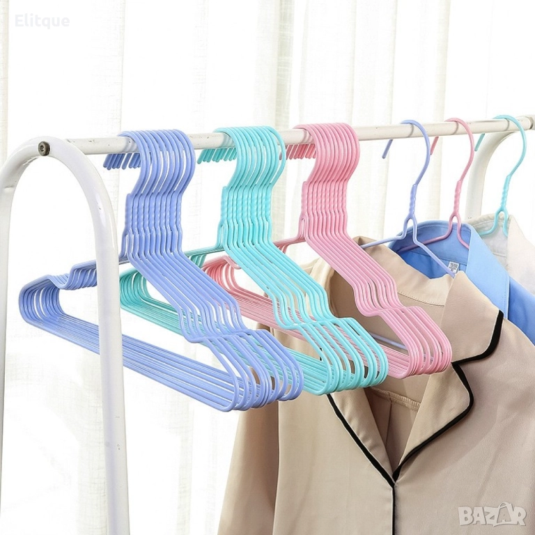 Тези практични закачалки са подходящи за организиране на дрехи в гардероба, сушилня за дрехи или други места. Разнообразните цветове добавят весело настроение и улесняват разпознаването на всяка закачалка. Перфектен начин за подреждане на дрехите с стил. ??