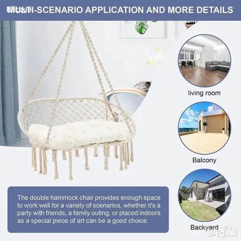 градинска люлка за двама с възглавници - перфектният релакс на открито! Осигурете си удобство и стил в градината с нашата двойна люлка. Изработена от висококачествени материали, тя предлага комфорт и издръжливост. Меките възглавници в съответстващ бежов цвят добавят допълнителен уют. Идеална за двама, люлката е перфектното място за релаксация и наслада на свежия въздух. Лесна за монтаж и устойчива на атмосферни влияния, тя ще стане любимото ви място за отдих.